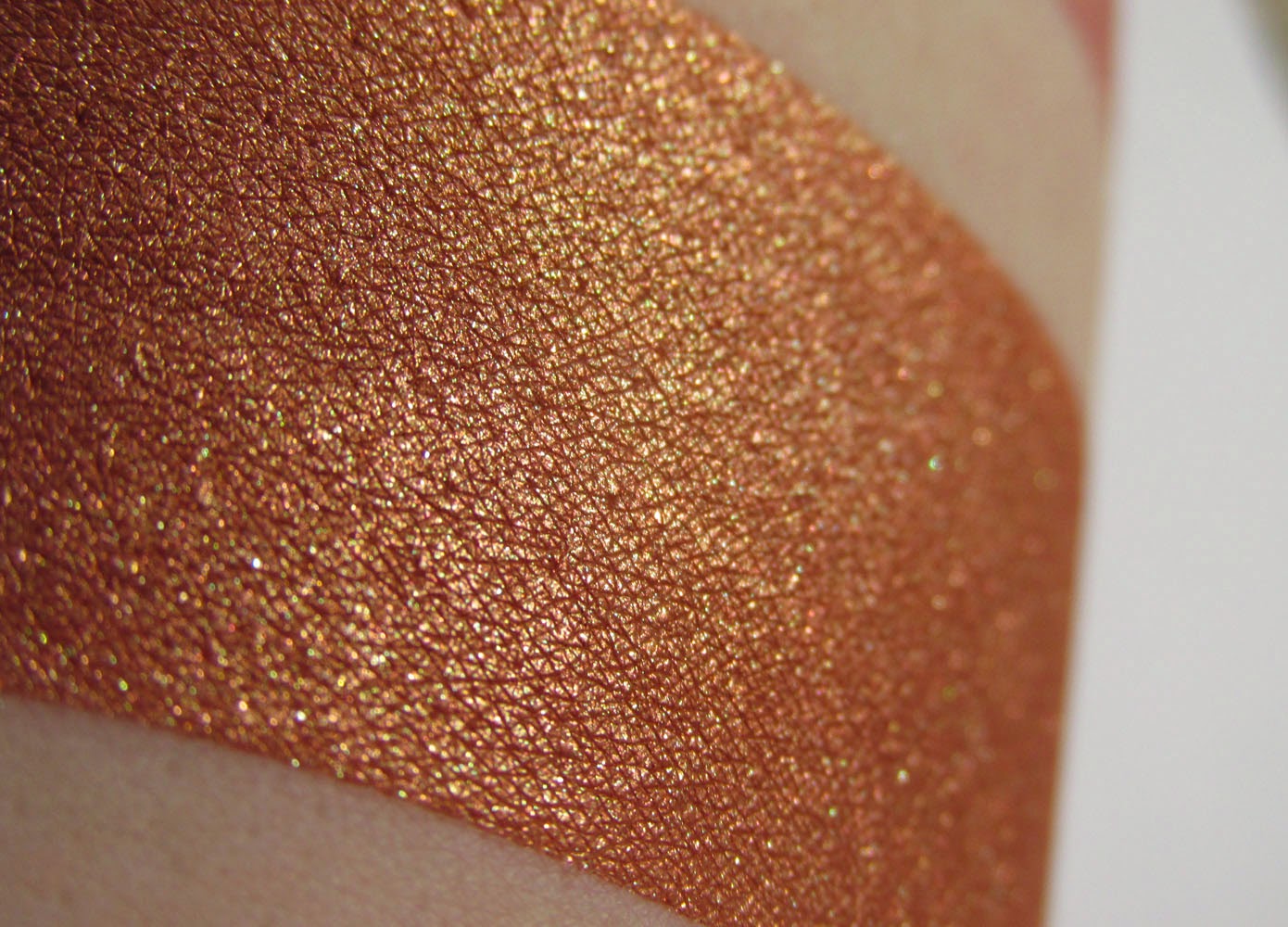 Medium brown with strong green shimmer and orange and purple sparks. Not lip-safe.